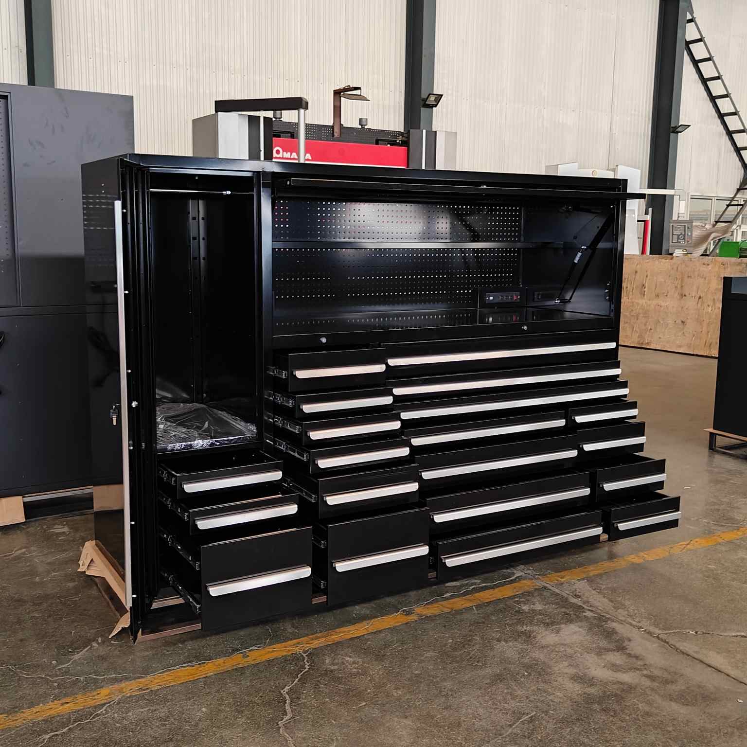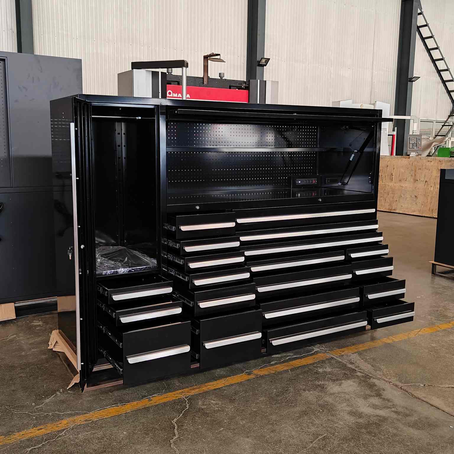 ব্ল্যাক মাল্টি-ফাংশনাল টুল ক্যাবিনেটের সাইজি গ্যারেজ ওয়ার্করুম, বাড়িগুলি এবং মেরামতের দোকানগুলিতে ব্যবহার করা যেতে পারে এবং সরঞ্জাম র্যাক, পাওয়ার সকেট এবং স্টোরেজ ড্রয়ারে সজ্জিত। সাইজির কালো মাল্টি-ফাংশনাল টুল ক্যাবিনেট কারখানার কর্মশালার জন্য সুবিধা প্রদান করেছে।
