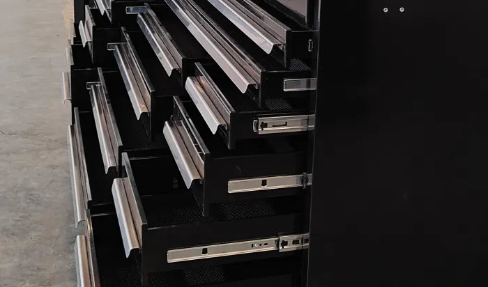 নীরব স্লাইড রেল: কালো মাল্টি-ফাংশনাল টুল ক্যাবিনেটে ভারী শুল্কের নীরব স্লাইড রেল রয়েছে, মসৃণ টান অ্যাকশন এবং শক্তিশালী লোড ভারবহন ক্ষমতা সহ।