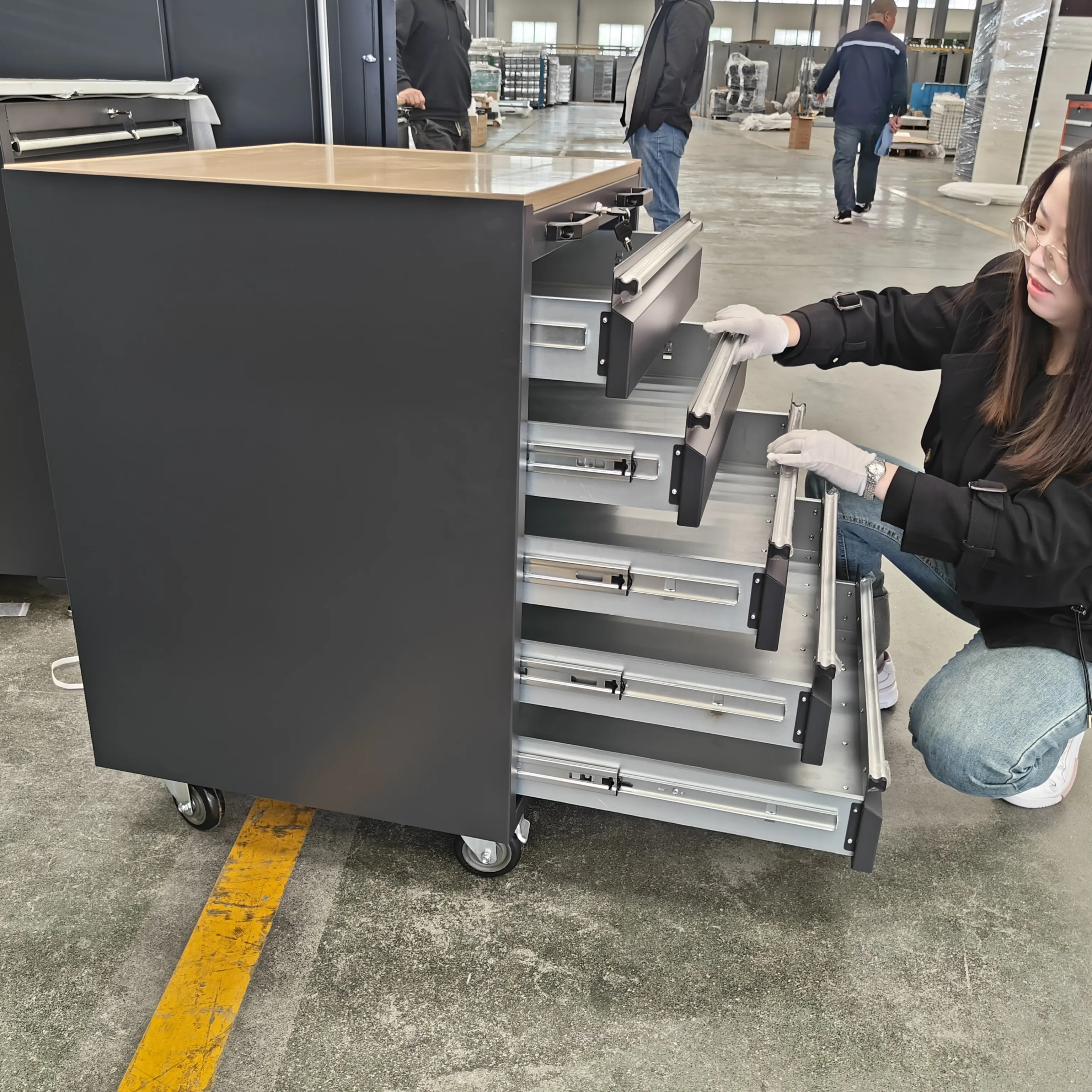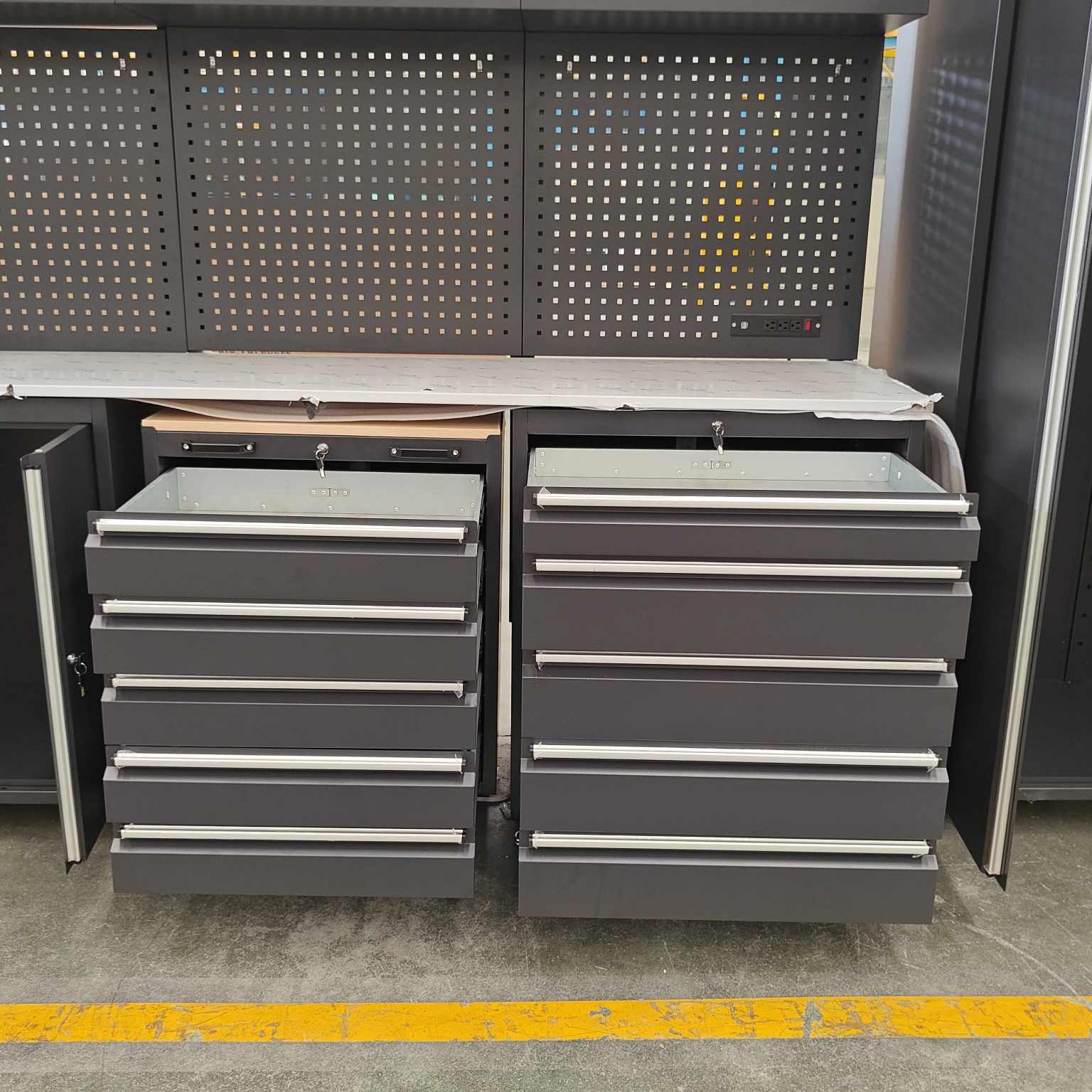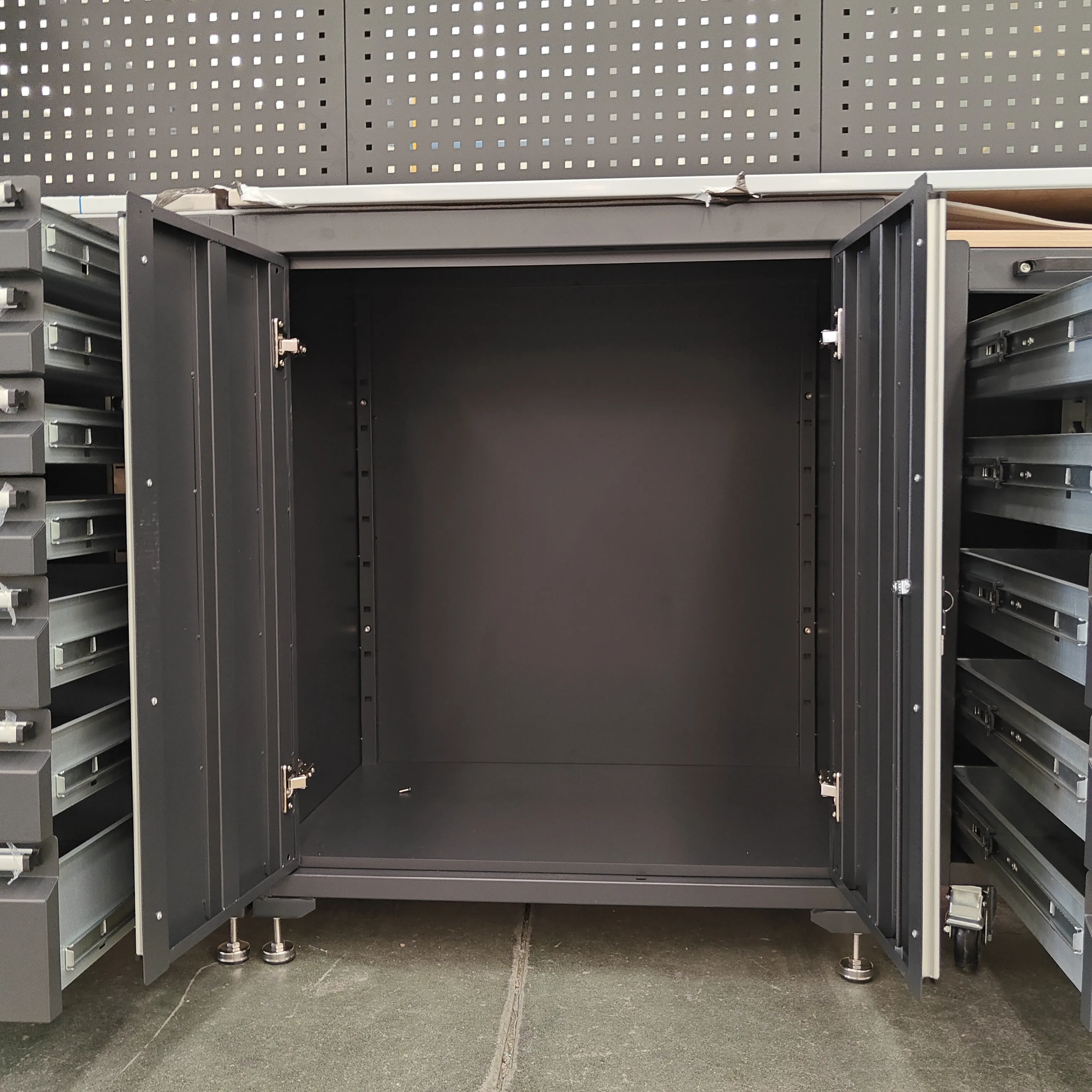 ভারী শুল্ক সরঞ্জামের মন্ত্রিসভায় প্রতিটি ড্রয়ারের জন্য একটি খোলা শেল্ফ ডিজাইন সহ একাধিক ড্রয়ার বৈশিষ্ট্যযুক্ত যা বিভিন্ন আকারের সরঞ্জামগুলির জন্য উপযুক্ত।