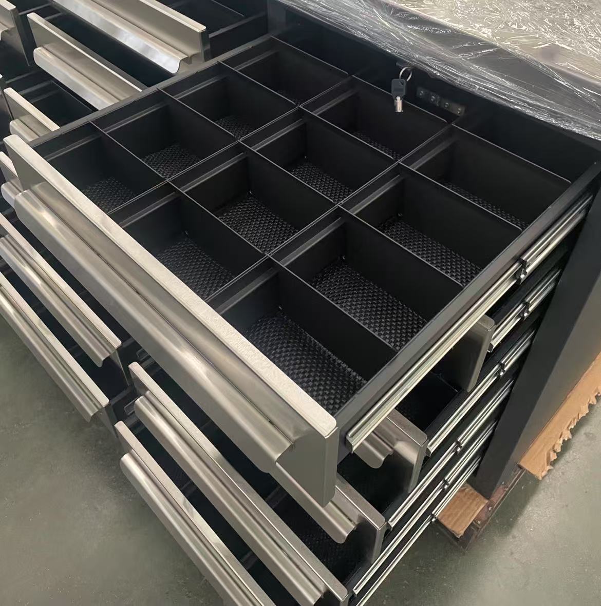 এই চালানের একটি স্ট্যান্ডআউট বৈশিষ্ট্য হ'ল উন্নত ড্রয়ার কনফিগারেশন। প্রতিটি ড্রয়ারটি যথার্থ বল-বহনকারী স্লাইডগুলি দিয়ে সজ্জিত, 100% পূর্ণ এক্সটেনশানকে সমর্থন করার সময় ব্যতিক্রমী মসৃণ এবং অনায়াস অপারেশন নিশ্চিত করে। এটি ব্যবহারকারীদের এমনকি কোনও ঝামেলা ছাড়াই খুব পিছনে সঞ্চিত সরঞ্জামগুলি অ্যাক্সেস করতে দেয়, সুবিধা এবং দক্ষতা ব্যাপকভাবে বাড়িয়ে তোলে।