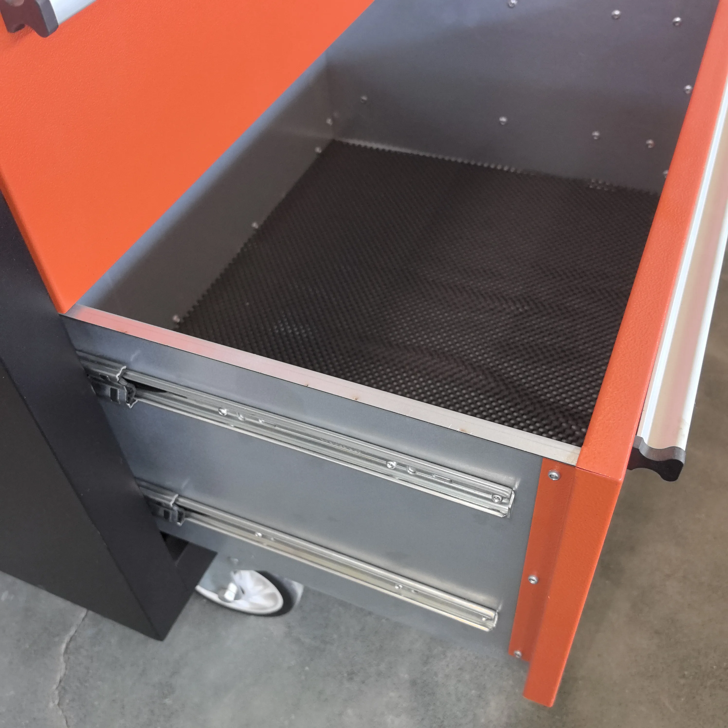সরঞ্জাম স্টোরেজ ক্যাবিনেটগুলি একাধিক লেআউট বিকল্পগুলির সাথে কাস্টমাইজড ড্রয়ারগুলি, সম্পূর্ণ এক্সটেনশন ক্ষমতা সহ নরম-ক্লোজ ড্রয়ার স্লাইড এবং কাস্টমাইজযোগ্য কাটআউটগুলির সাথে ফোম ড্রয়ার লাইনার সন্নিবেশ করা যেতে পারে।